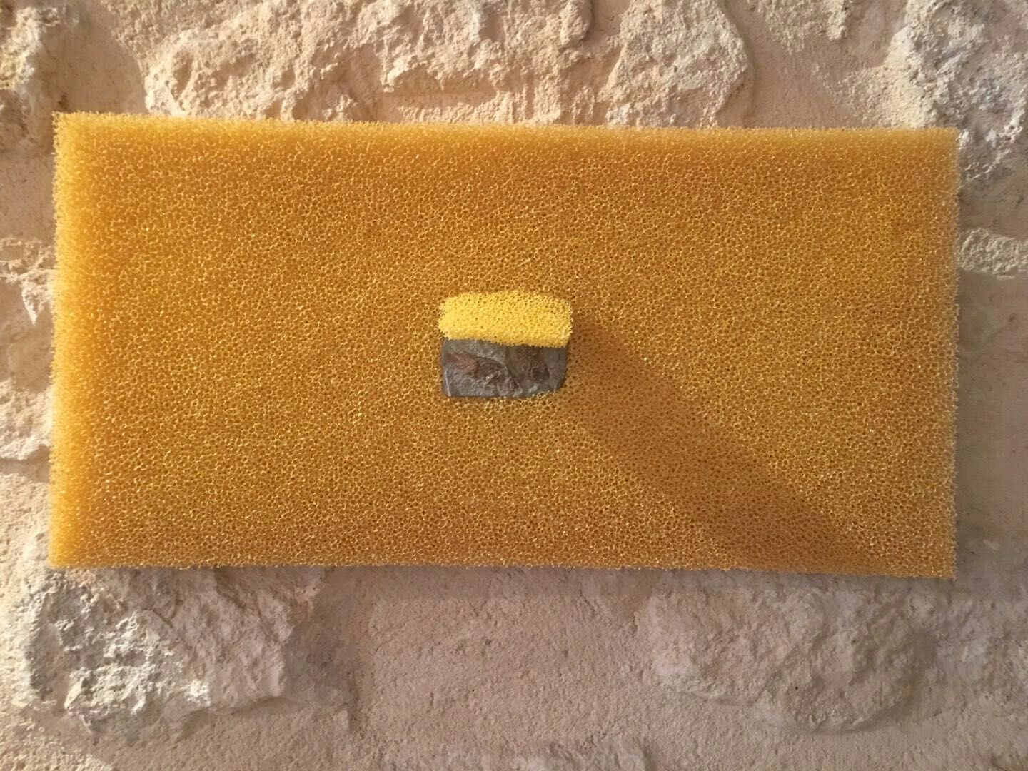 Foam, two fossilized fish