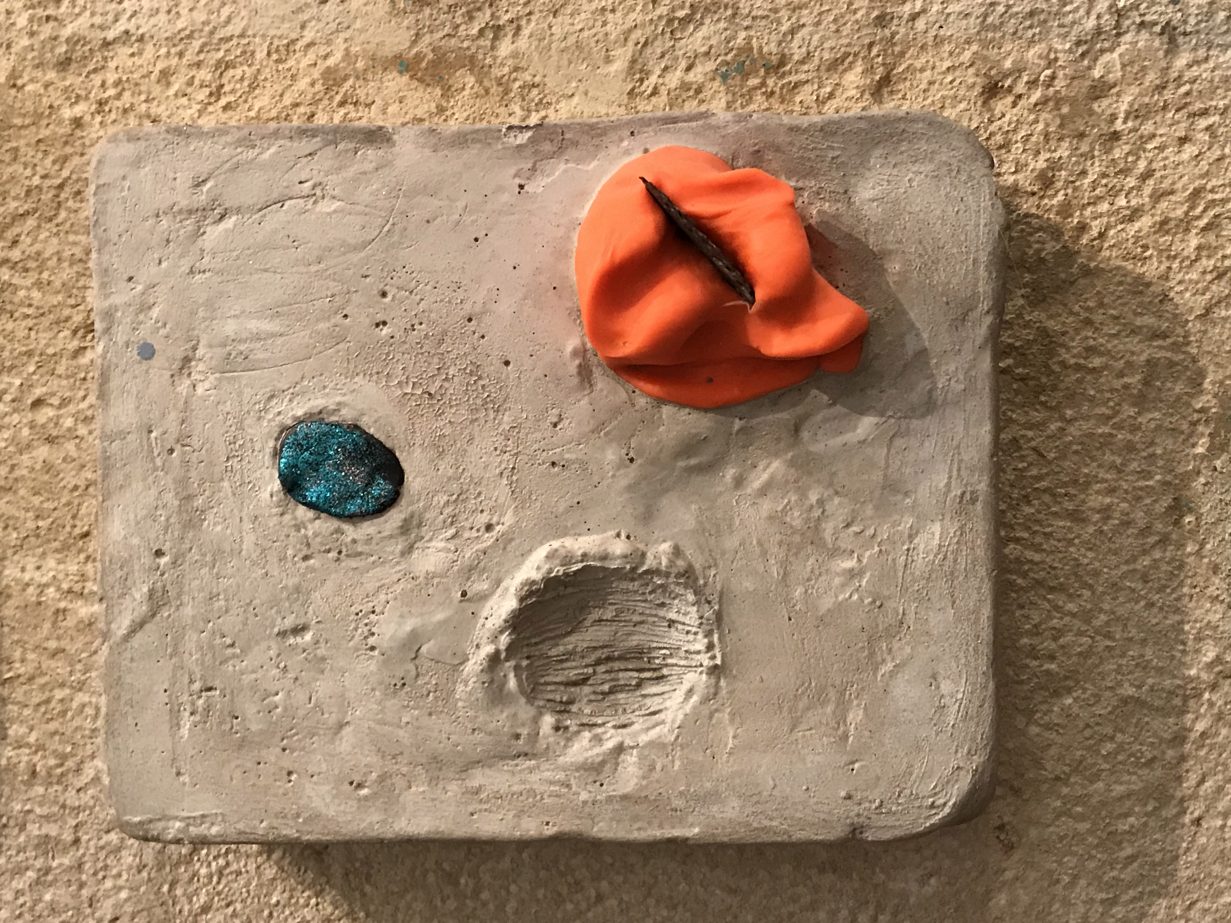 Concrete, modeling material, glitter, iron