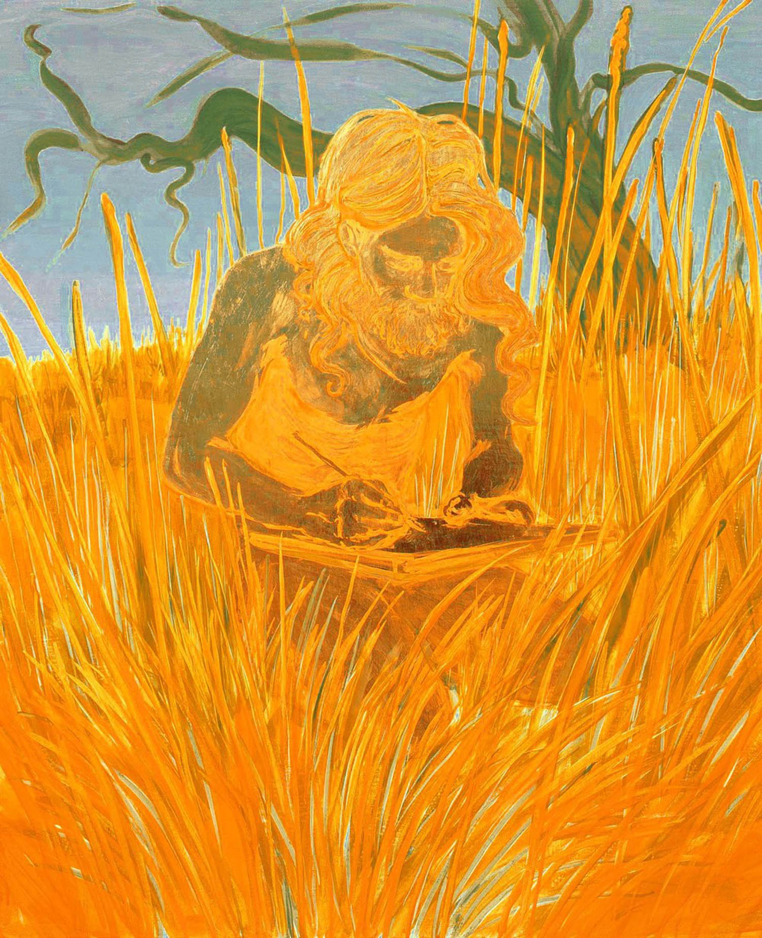 Gold leaf, fluorescent golden yellow, lead tin yellow, green earth, plods blue, verditer, zinc white and yellow ochre in egg tempera on board, 90 × 60 cm, 2008