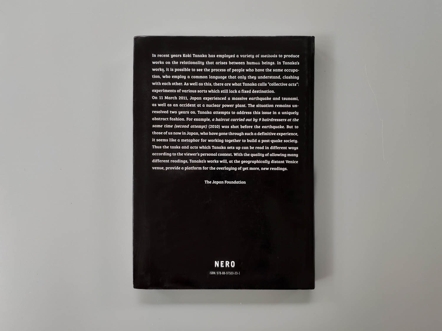 On 11 March 2011, Japan experienced a massive earthquake and tsunami, as well as an accident at a nuclear power plant. The situation remains unresolved two years on. Tanaka attempts to address this issue in a uniquely abstract fashion. For example, a haircut carried out by 9 hairdressers at the same time (second attempt) (2010) was shot before the earthquake. But to those of us now in Japan, who have gone through such a definitive experience, it seems like a metaphor for working together to build a post-quake society. Thus the tasks and acts which Tanaka sets up can be read in different ways according to the viewer’s personal context. With the quality of allowing many different readings, Tanaka’s works will, at the geographically distant Venice venue, provide a platform for the overlaying of yet more, new readings.