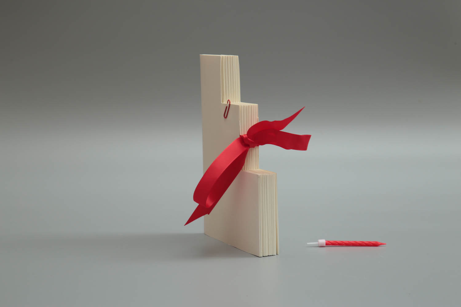 Invitation card conceived originally for the 2010 exhibition Hip Hip Hurrah! at the Statens Museum for Kunst in Copenhagen, marking the institution’s 125th birthday. The original design is by Kristine Suhr in collaboration with Danh Vo; a second printing was the version which served as the invitation card for the Danish Pavilion at the 56th Biennale di Venezia, 2015.The edition for the shop, is different from the two editions just mentioned, it’s not for specific exhibition.
