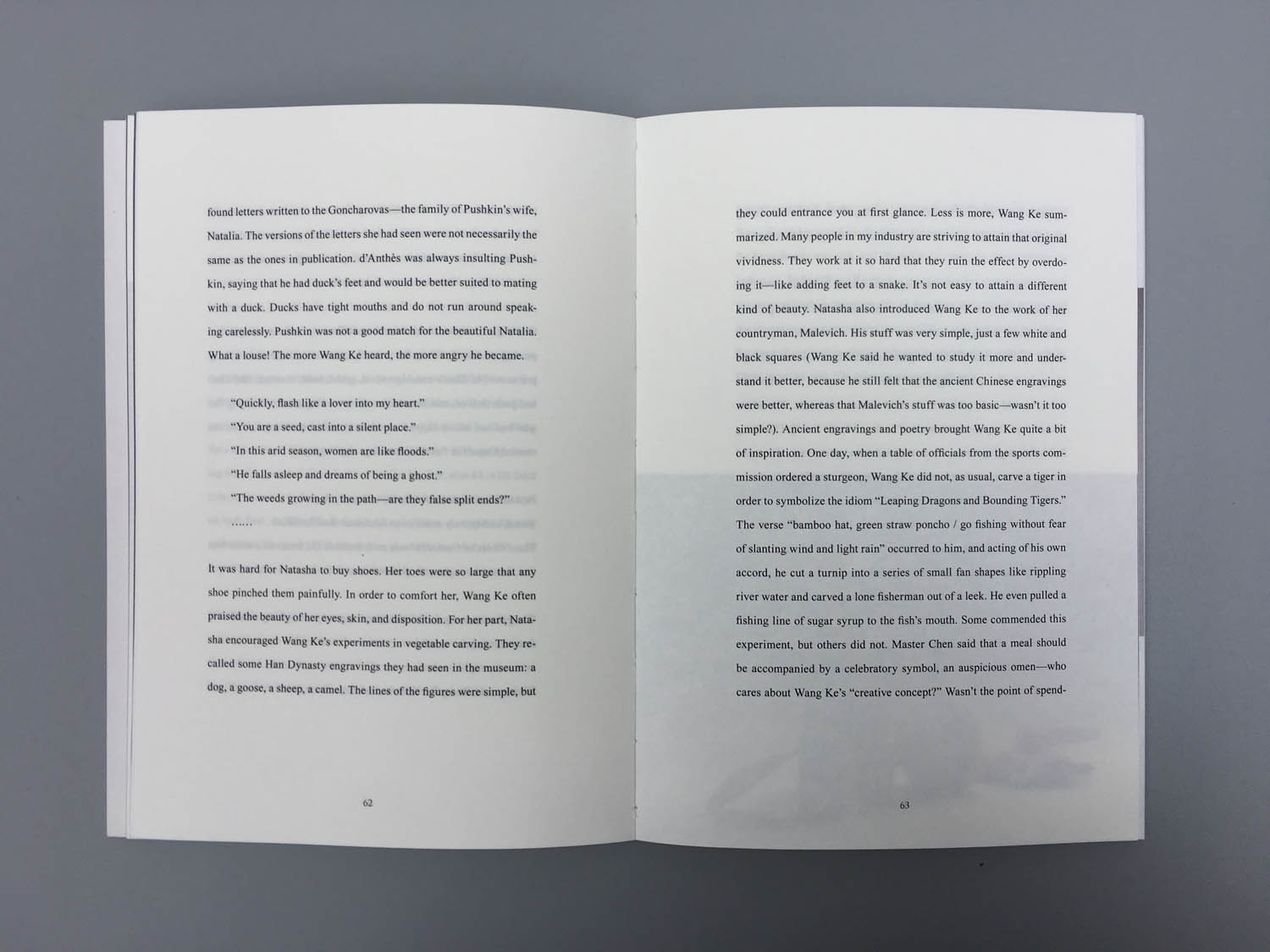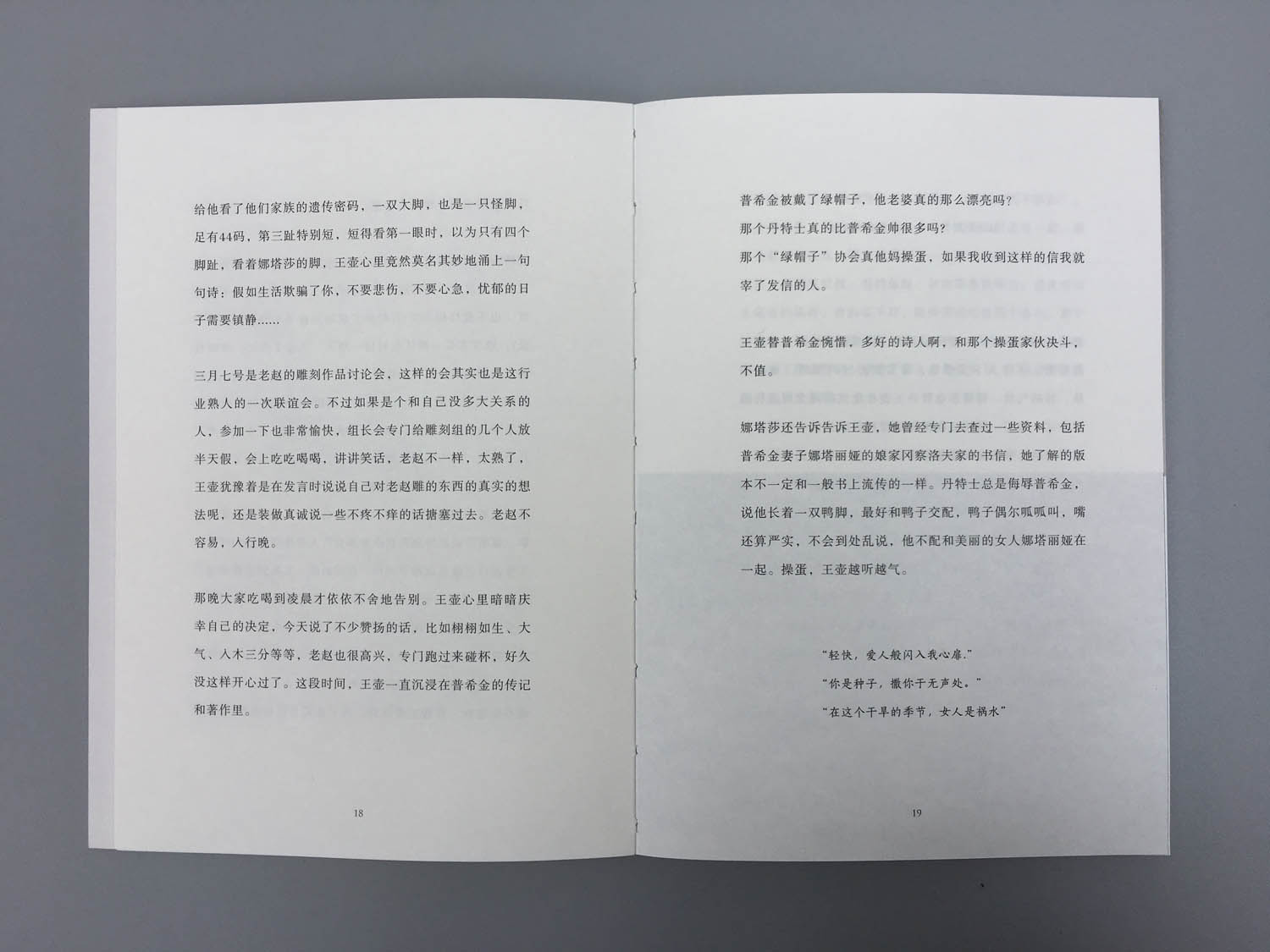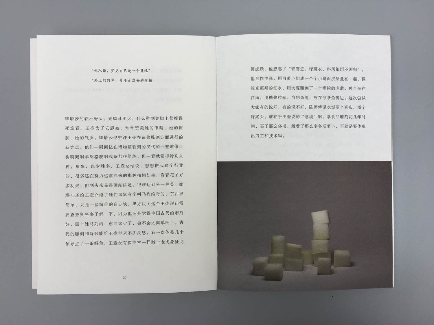 His talent in poetry would never be an obstacle for him to become a finest food-carving cook, or to gladly be a security guard in a university. His secret connection with poetry or “the art of living” seem to bound his fate with Uncle Zhang, Natasha, and his wife Young Mei. They are meant to meet each other. Hence, Duan Jianyu portraits this oddness about ordinary lives in her novel Foot. ”