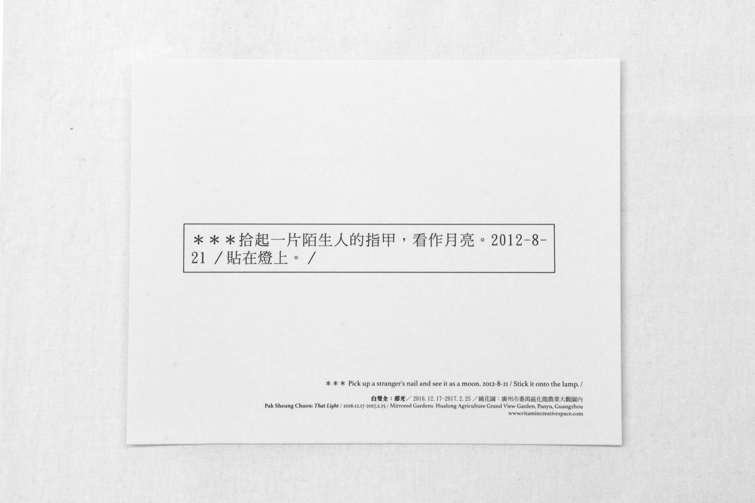 In the daily life, Pak takes notes on his notebook anywhere, anytime, be it text or drawings. “I let myself wander in the city or idle at home until I’m quiet enough to hear the faintest trembles in my heart (the responses to my surrounding and people), then I’ll write them down one by one.” (Pak Sheung Chuen, 2011). This publication can be seen as the special edition of the L notes.