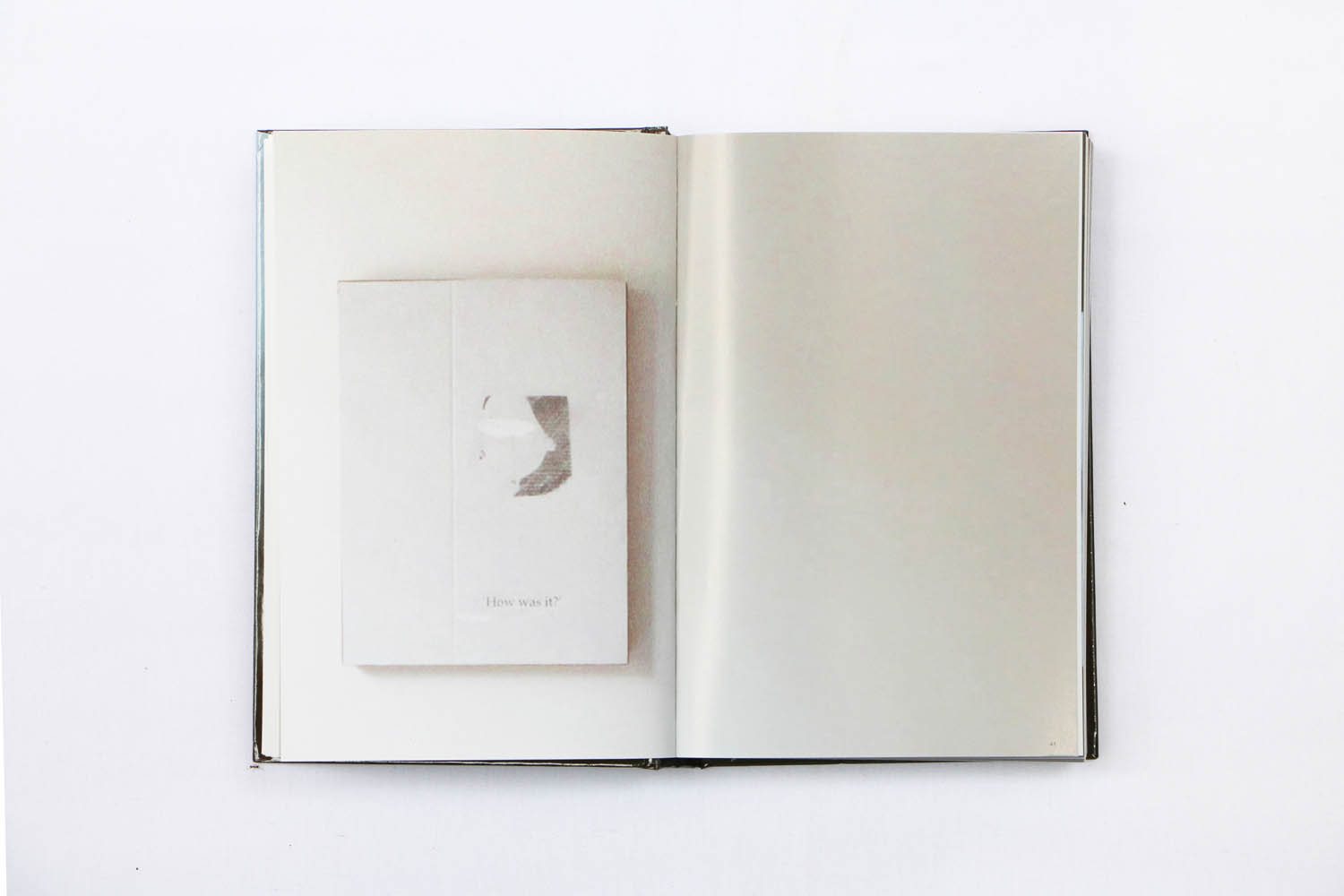 When the designer asked Lee Kit what he expected from this book, he replied: “I’d prefer you to make a book you’d love to have yourself.” The artist handed over his control; what you see here is a practice as seen through the eyes of someone else. This is paradigmatic for Lee Kit’s approach, which bridges the gap between the artist’s creation of an autonomous and opaque room of his own and the opportunity for others to delve inside. Our book is light and as readable as a novel, and ends with a long photographic sequence composed from the imagery which Lee Kit initially sent us: 600 megabytes of photographs, short films, daily clips, horizontally sorted, lacking any tags with dates or further information. The designer’s work consisted in bringing her own order into this, crossing her own room of fragmented memories with Lee Kit’s — into a speculative third space, which the book’s visual sequence quintessentially represents. So it seems only logical that the book is published on occasion of two exhibitions, which developed in the artist’s mind as one show in two places: Lee Kit’s exhibition at the Walker Art Center, titled Hold your breath, dance slowly and his presentation at S.M.A.K. titled A small sound in your head.
