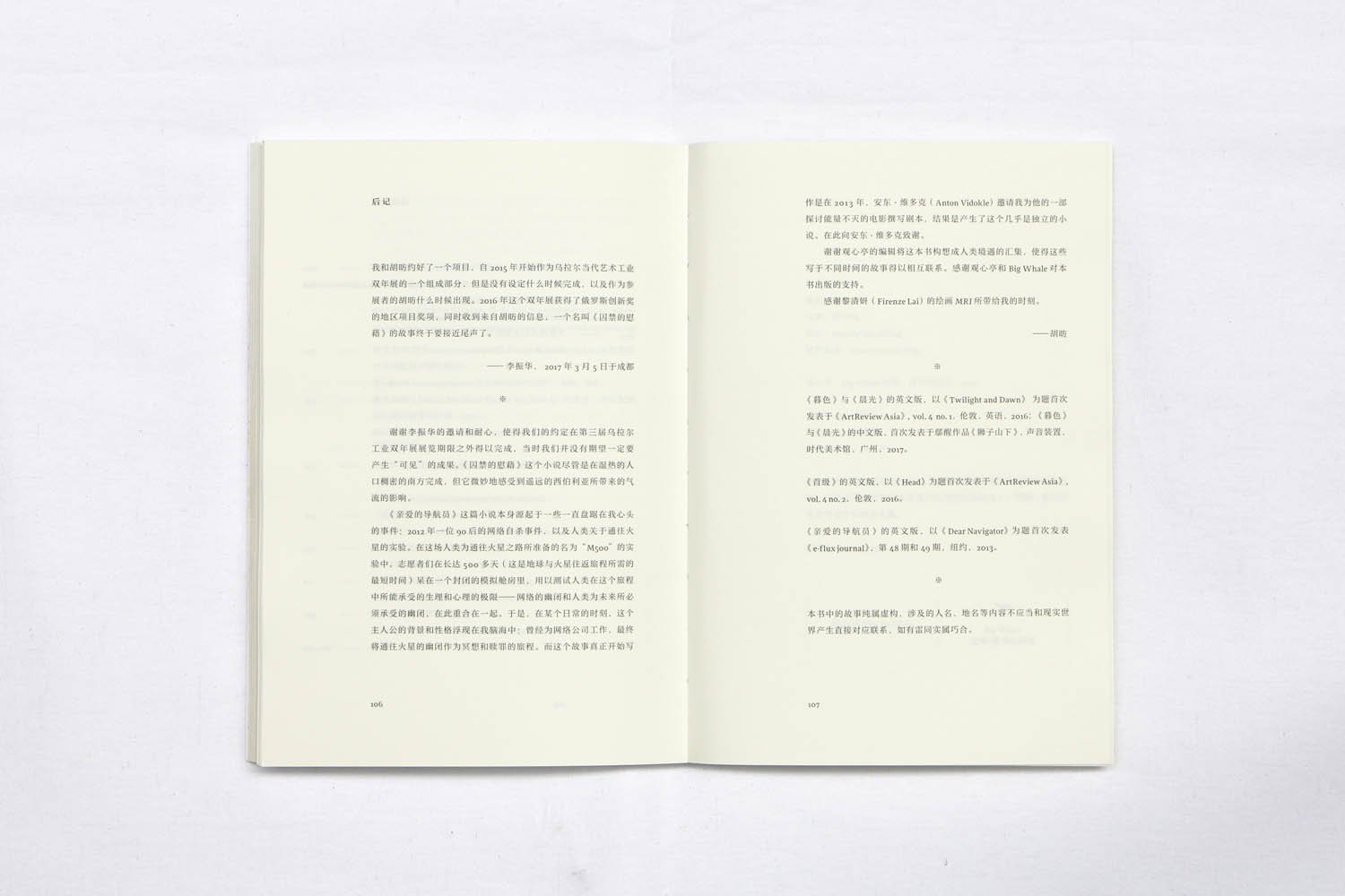 The stories in Notes from a Time Bandit originates from a few events that has been lingering in the author's mind: Edward Snowden, prison tourism, an online suicide case of a millennial in 2012 and an experiment of human mission to Mars. In the accelerating speed of technology gradually taking control over the basic conditions of human life, the enclosure of the Internet seems to have overlapped with the enclosure that men must endure for the sake of the future, and so at some quotidian moment, the background for the stories and the personalities of these characters appeared in the author’s mind. Notes from a Time Bandit starts with the author's efforts to “try to depict a person” and ends in a “blind faith”. In a certain sense, the book is paying homage to Dostoyevsky’s Notes from Underground. If the various highly human-controlled living spaces in the stories are the extreme reflections of today’s technologised living situations, then perhaps the solar terms would signify a return of the collective existence.
