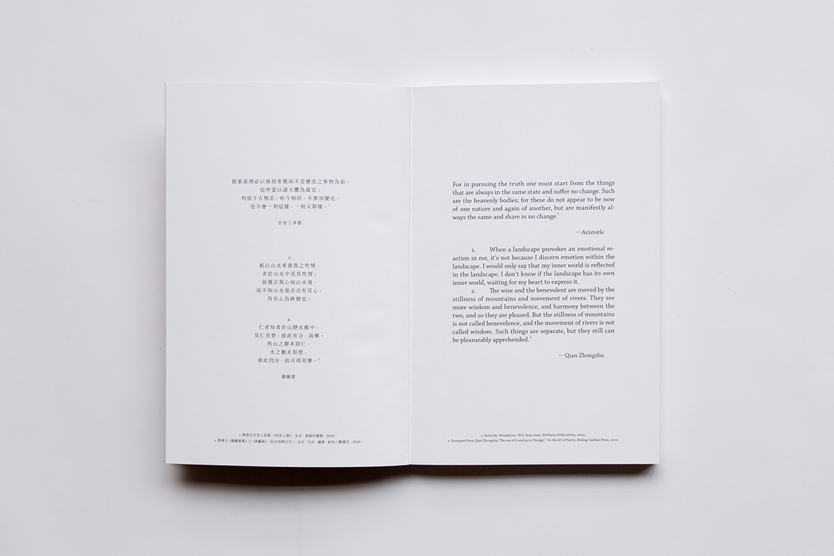 Through the artist book, the reader is invited to explore the art world of Hao Liang, the pages become a rhythem and a storyline for those “moments”, allowing the readers to interpret the landscapes in the book and reflect on the images of themselves. In this way, the book and the readers create a theatre of perceptions together.