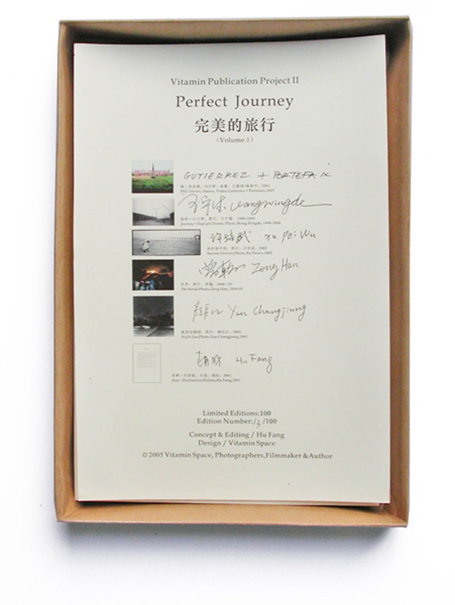 Perfect Journey is a series publication, which is exploring the different personal encounters with Chinese social reality. All these personal expressions through images are like a diary to make dialogue with the Chinese social space and life. In the modern society of China, the memory of the context of daily experience is rapid covered and recreated. This publication is trying to catch the social experience in the certain moment of China from different angel and layers. First volume of Perfect Journey is selection of the images by four Chinese photographers (Wang Ningde, Xu Peiwu, Yan Changjiang and Zeng Han), one video work by Hongkong based French architect group Gutierrez + Portefaix (Mapoffice), and a short fiction by writer Hu Fang.