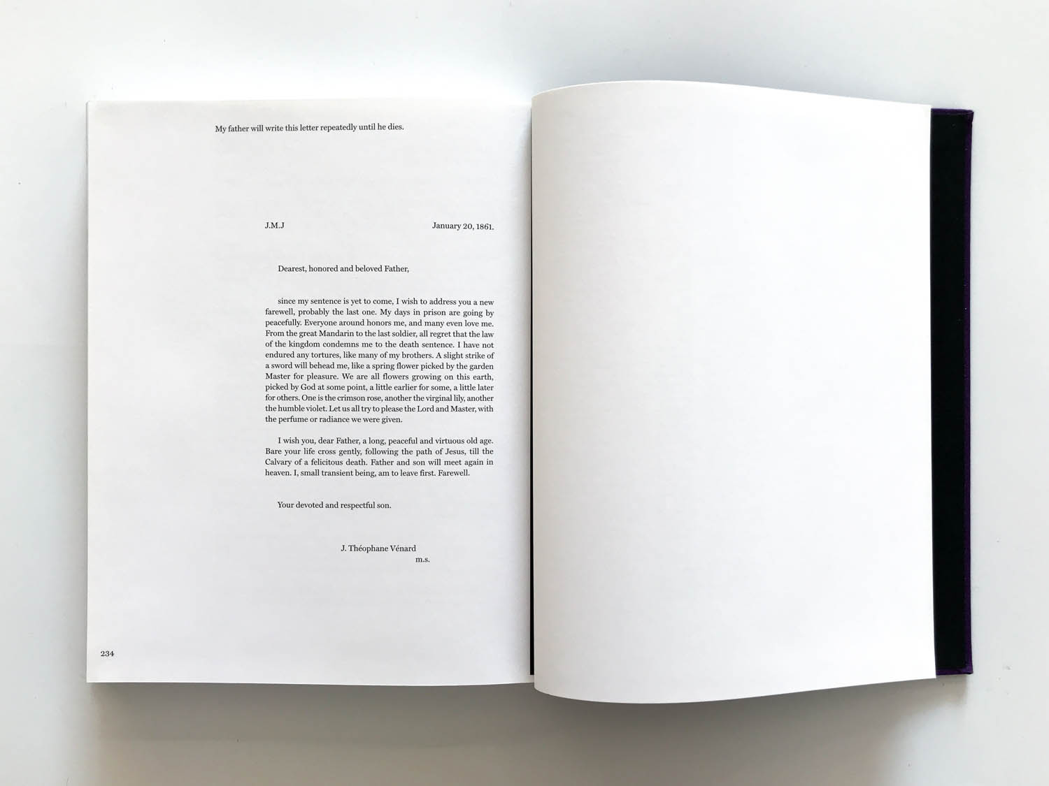 The second volume honors the participation of Father Danh Vo’s, Phung Vo, in the projects of his son as a separate work complex. A number of copies of a letter written in France in the nineteenth century, written by Théophane Vénard, who was later beheaded by the Catholic Church as a martyr, before the beheading of his own father.