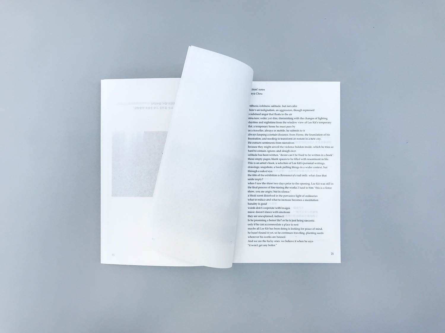 This book has been published on the occasion of the exhibition, Lee Kit: Resonance of a sad smile (March 1-April 28, 2019) at Art Sonje Center, Seoul.