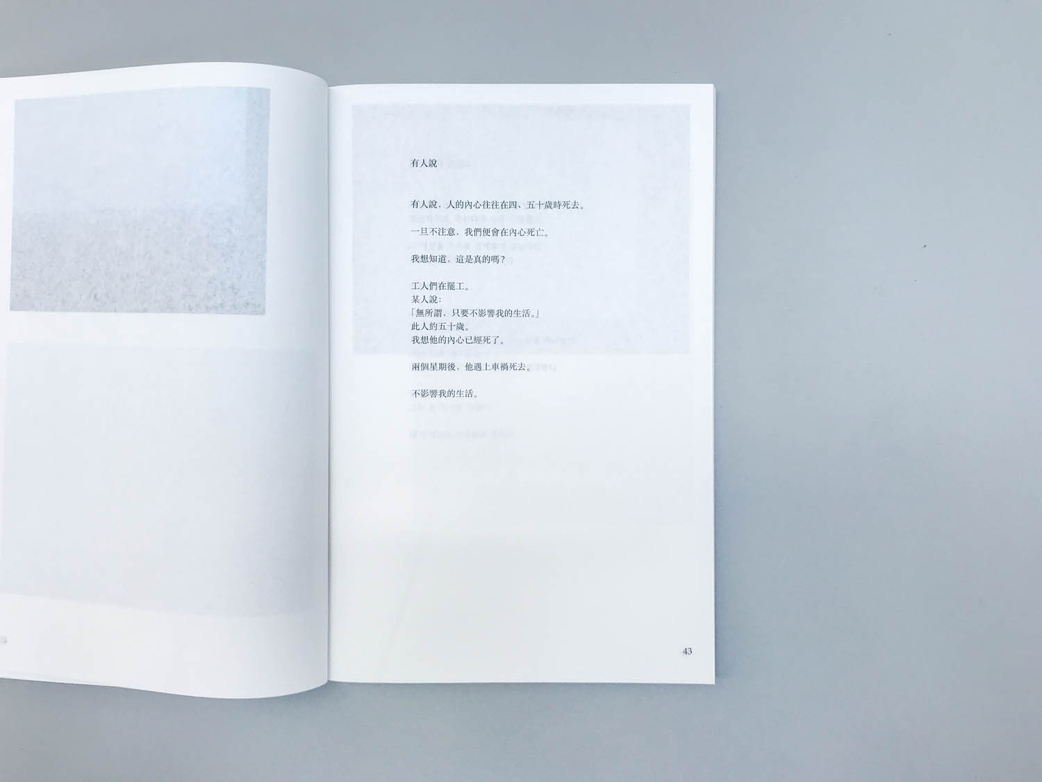 This is an artist’s book, a selection of Lee Kit’s personal writings, drawings, snapshots, a book pulling things in a wider context, but through a naked eye.