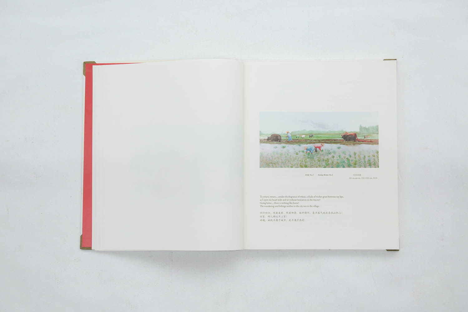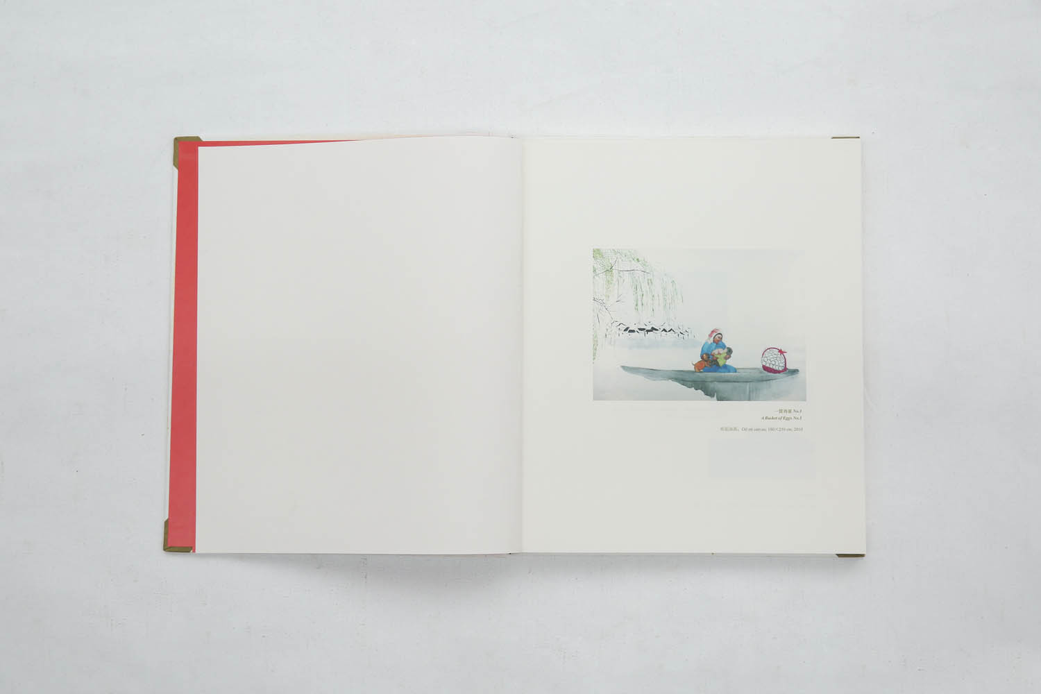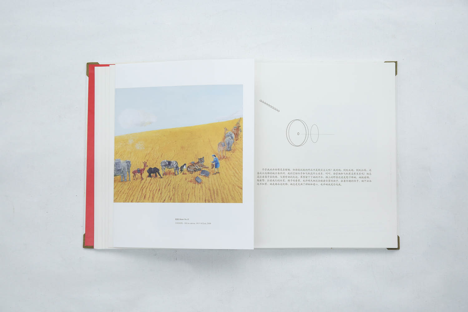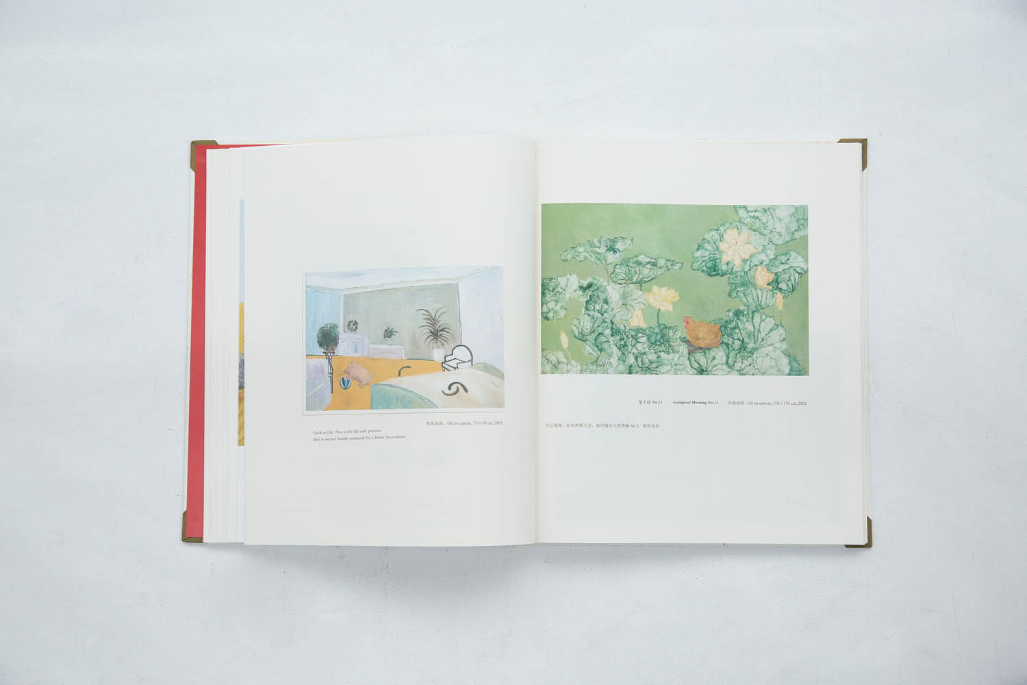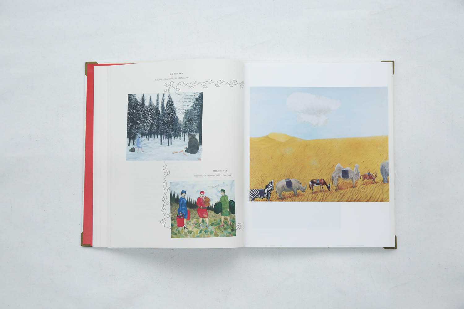 Even if my paintings seem false, who can say they are not realism? The chickens in my work rampage and shit everywhere. They love watching scenes in elegant places. The airhostess in my work is not really related to any airplane, ha ha, who cares if she is or not! She always rushes with her suitcase, leaving footsteps in the Gobi Desert and sweating on the plain. Beasts always put obstacles in her way. She is always energetic and dignified, even when carrying cabbages and a monkey’s bananas. Maybe she will be holding your uncle’s child or pulling your aunt’s nephew. She never feels tired in her work. She always walks elegantly. She is always full of mystery and love. She can be you or me. When she is exhausted, she will sit by the rock, take off her shoes, smell the flowers and listen to the birds sing.